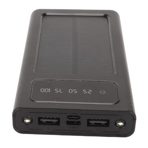 1.High-Efficiency Solar Charging & Dual Input ,Featuring a high-efficiency solar panel, this charger harnesses the power of the sun to recharge itself. It's not only eco-friendly but also a reliable backup power source for emergency situations, camping, or hiking. For conventional charging, it also supports fast input via Micro USB or USB-C ports, ensuring it's always ready to go.